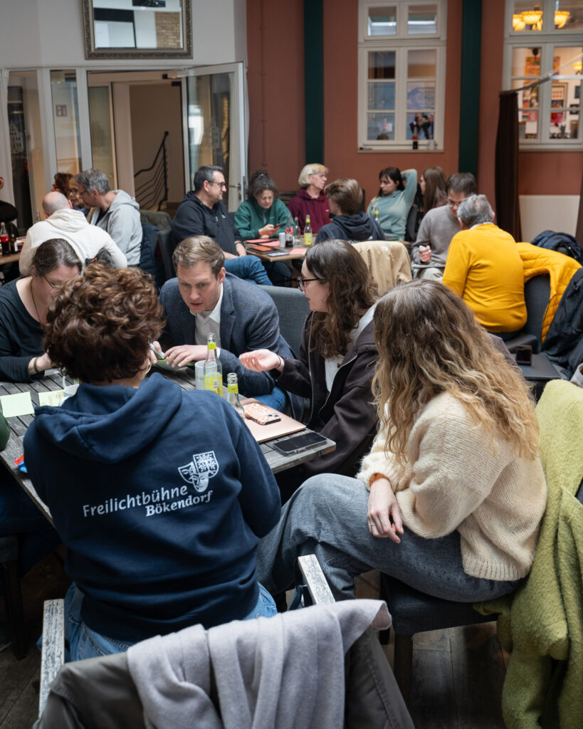 Im Mittelpunkt standen die Angebote der Deutschen Stiftung für Engagement und Ehrenamt (DSEE) sowie die Bedarfsanalyse des verbandseigenen Bildungswerkes für Theater und Kultur (BTK). In Kleingruppen wurde intensiv zu Themen wie Zukunft und neue Formate, Spiel & Regie, Technik, Jugendarbeit sowie Organisation und Führung gearbeitet.